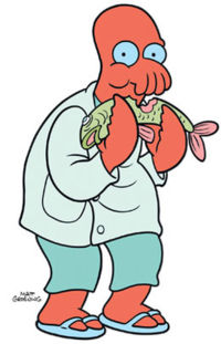 He is the heptagonist in Futurama. He was born on the Planet Decapod 10 and moved to Earth to practice medicine after giving up comedy once. Despite being a self-proclaimed expert on Humans, he called Fry "young lady" when they first met and has confused Fry and Bender. He speaks, as all Decapodians do, with a heavy Yiddish accent. He is the nephew of famed eccentric movie celebrity Harold Zoid. On a number of occasions, Zoidberg has made mention of Hermes Conrad being his best friend.